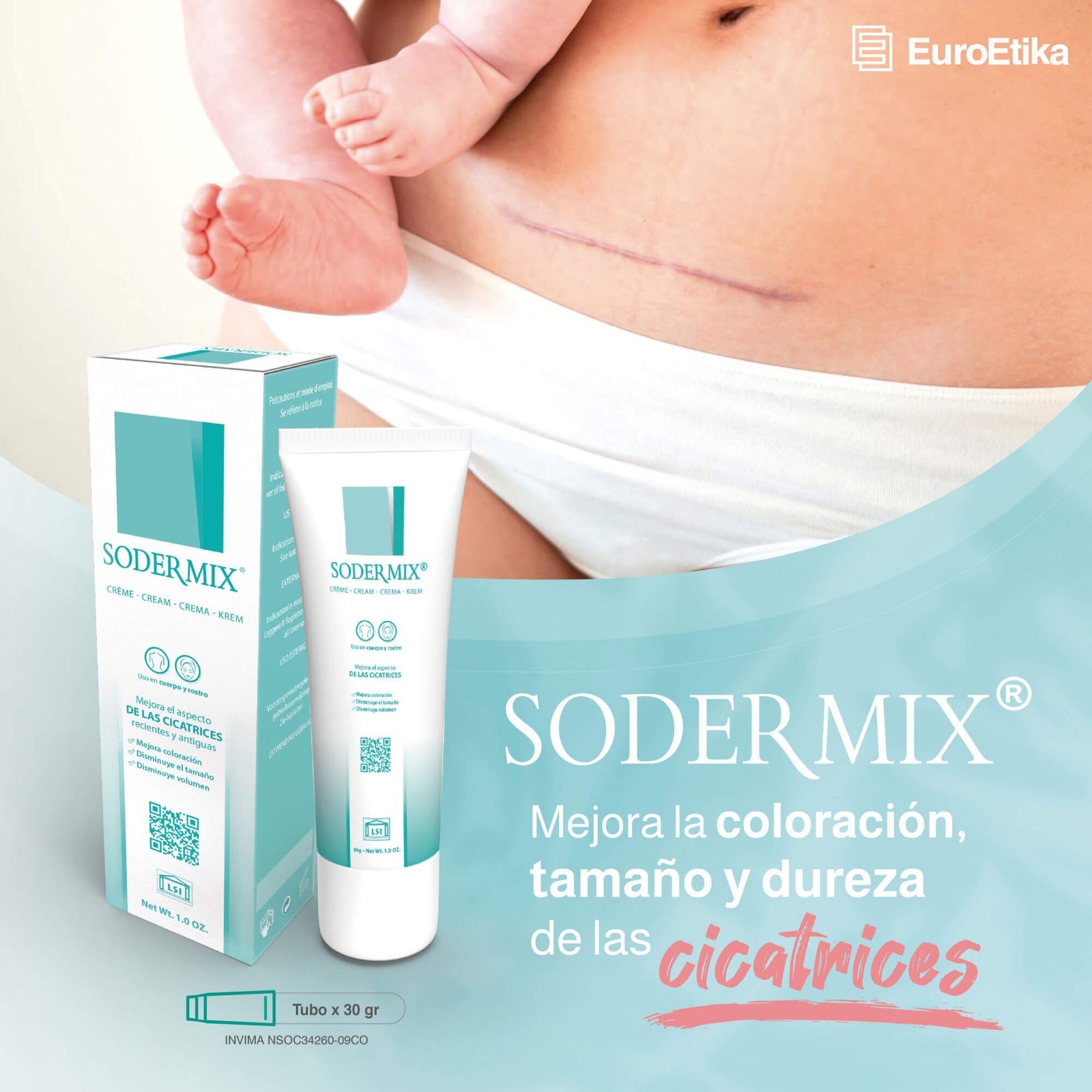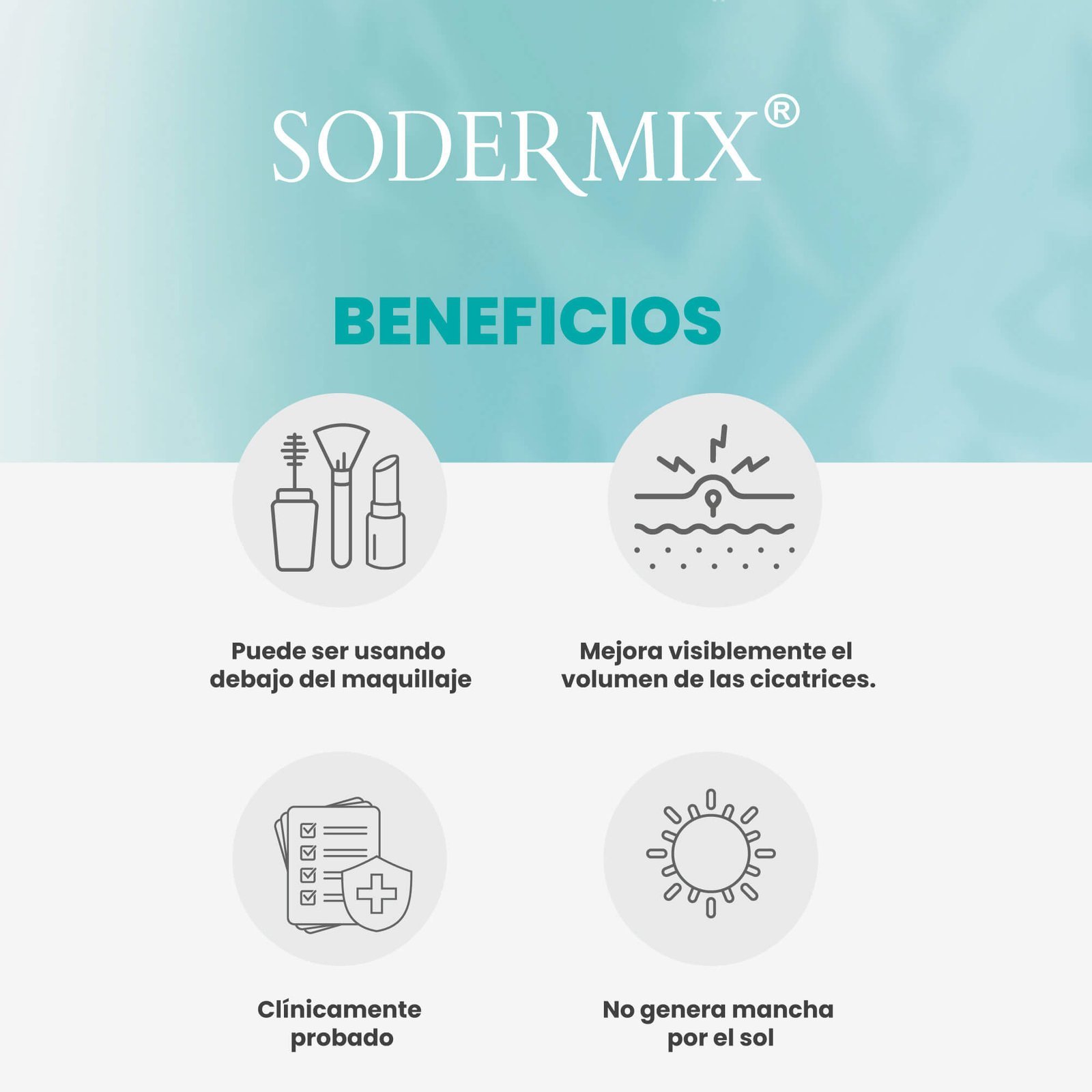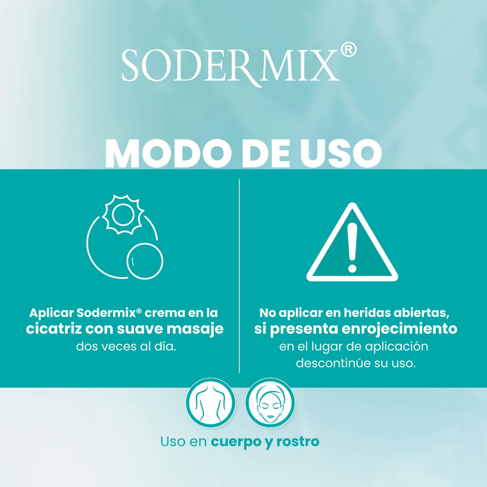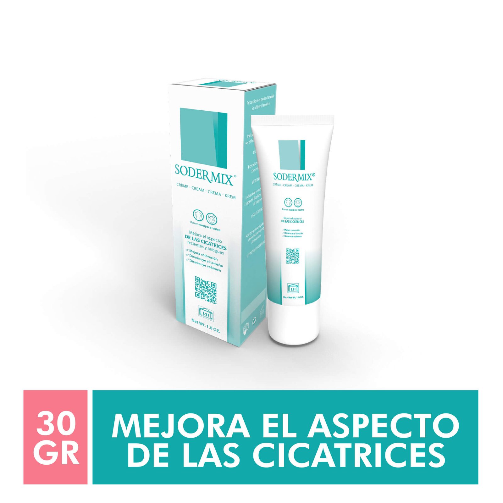 Sodermix® es una crema con acción antioxidante y regeneradora, desarrollada para mejorar visiblemente el aspecto de las cicatrices recientes o antiguas, incluidas las queloides e hipertróficas.
